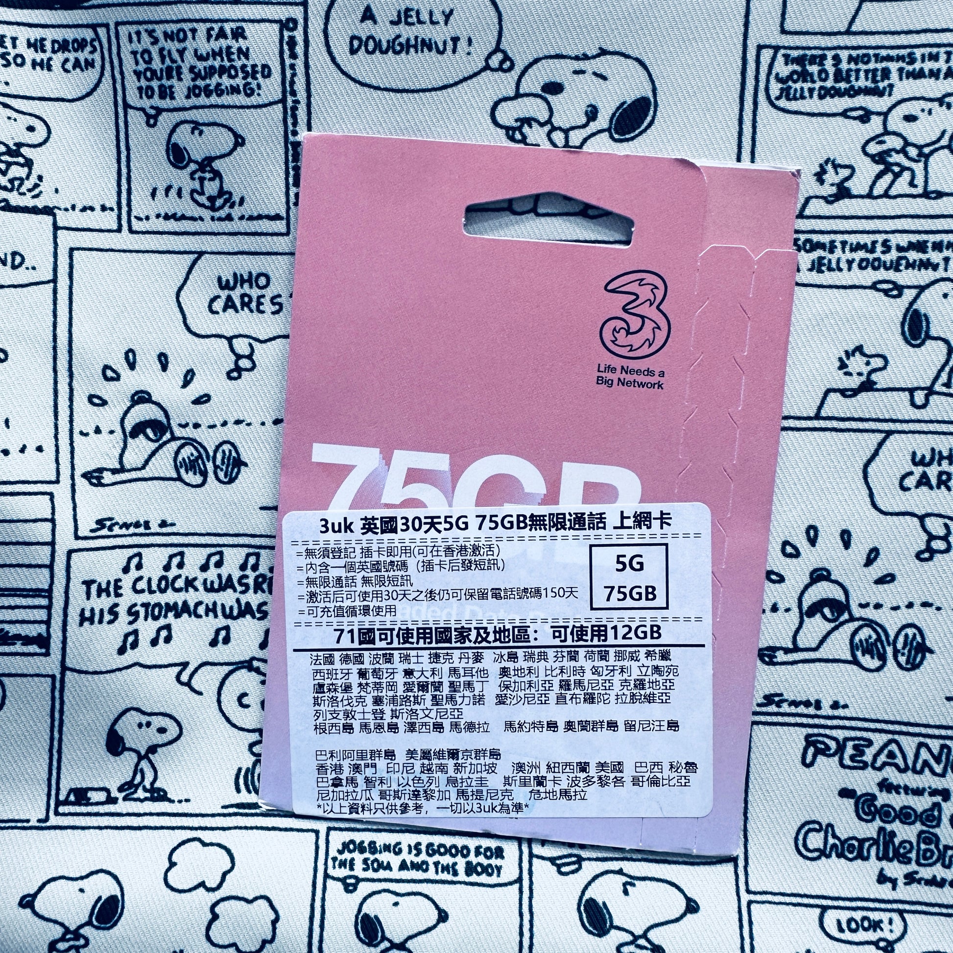 75GB數據(英國使用3UK 5G/4G網絡,其他地區主要使用3UK的5G/4G網絡 或 合作夥伴網絡供應商提供的4G/3G網絡)