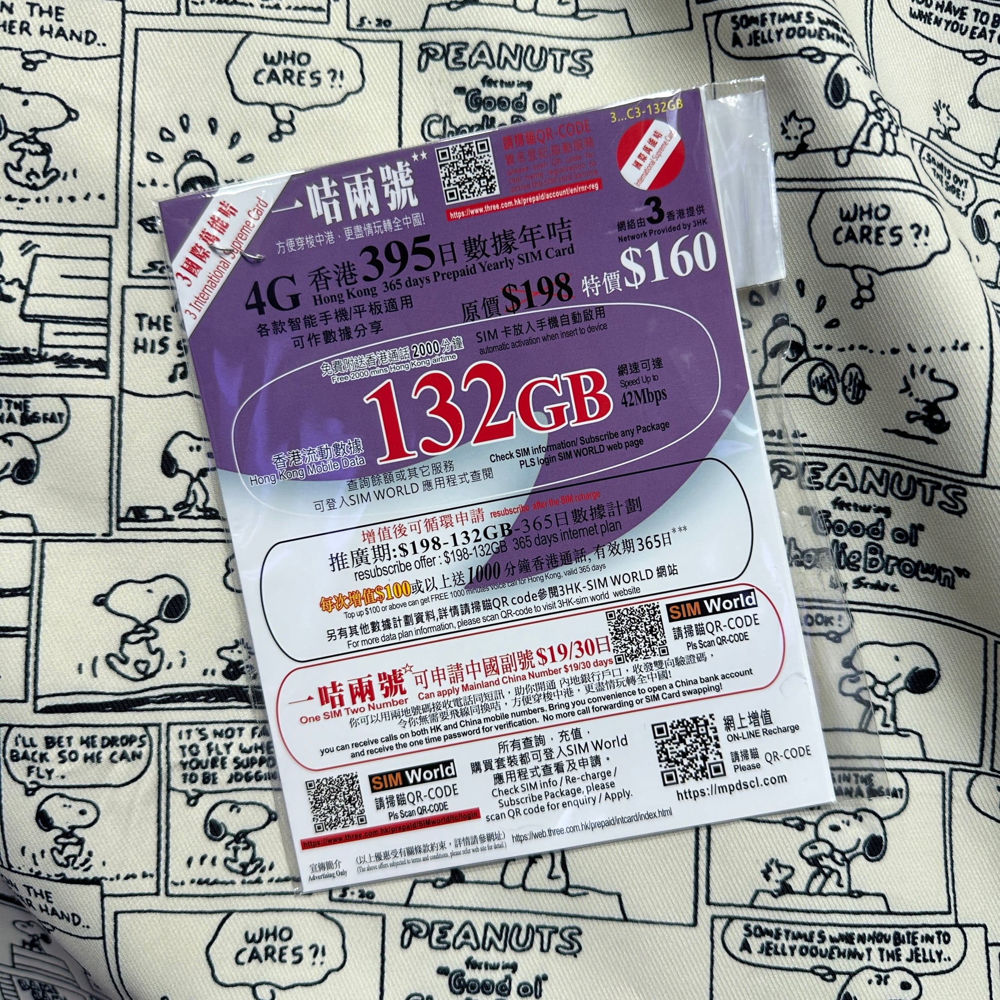 eSIM 395日香港本地132GB語音數據儲值卡|支持一卡兩號