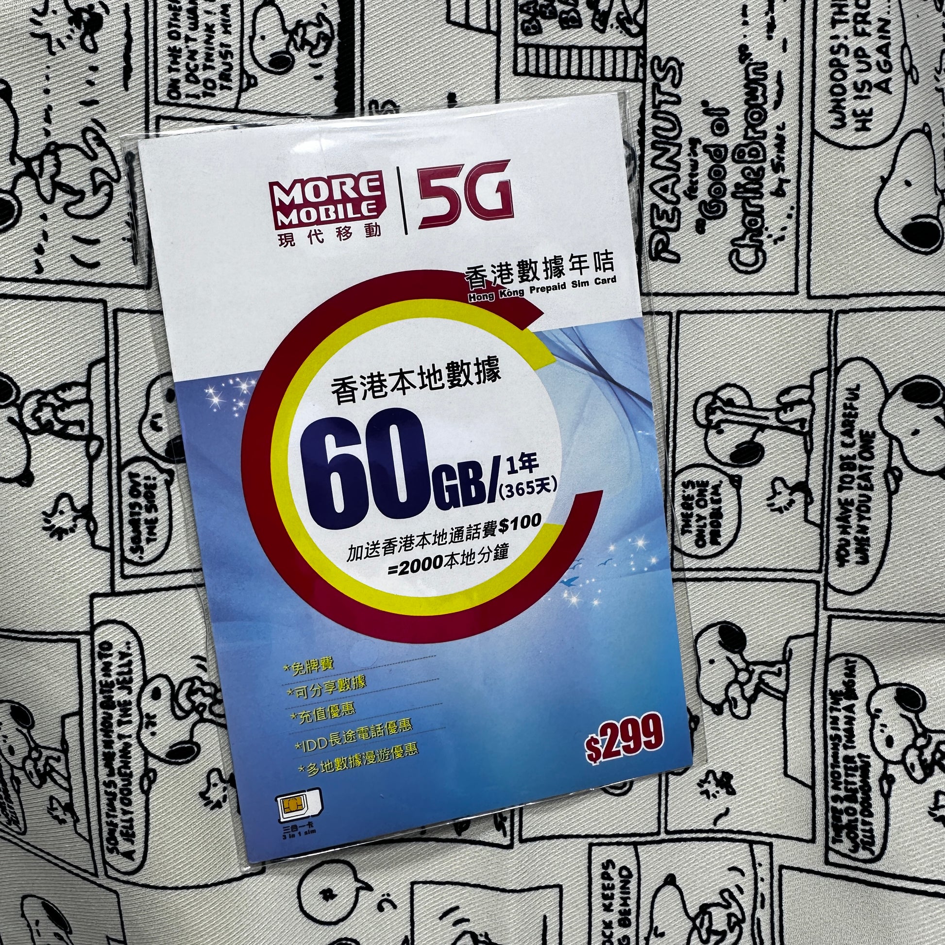 More Mobile|5G現代移動香港數據年卡60GB儲值卡