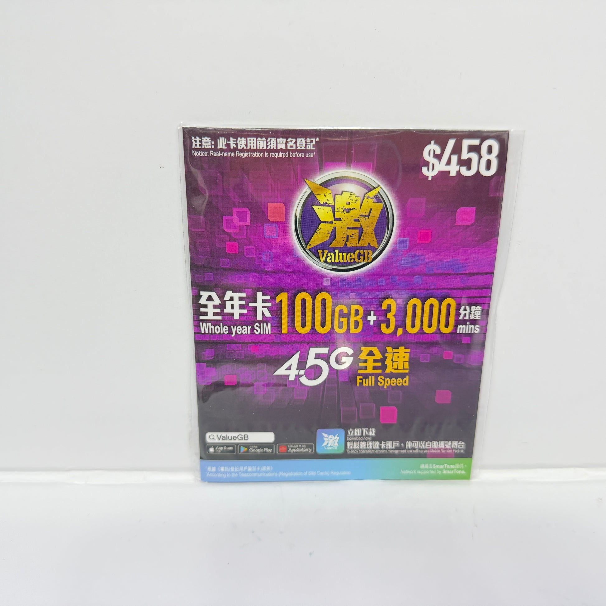 ValueGB激|香港全年100GB數據儲值卡